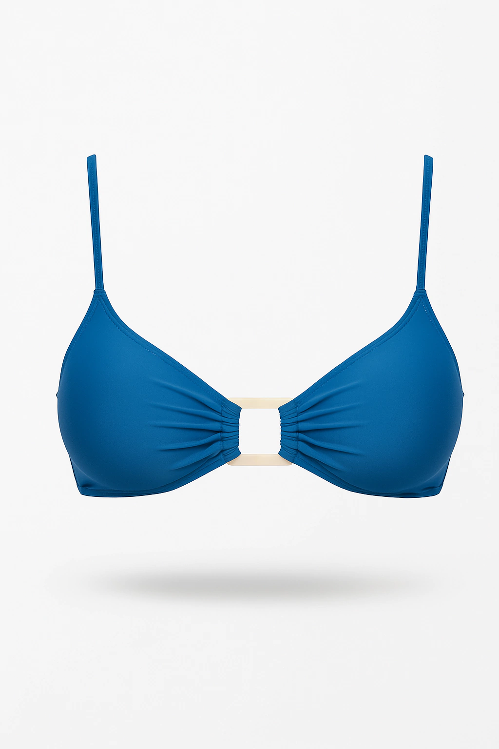 Top tipo triangulo con tiras regulables, contiene argolla central y tiras para atar en la parte trasera.