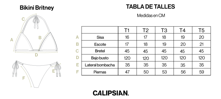 Corpiño: Triángulo con tiras regulables, y elastico en las costuras.