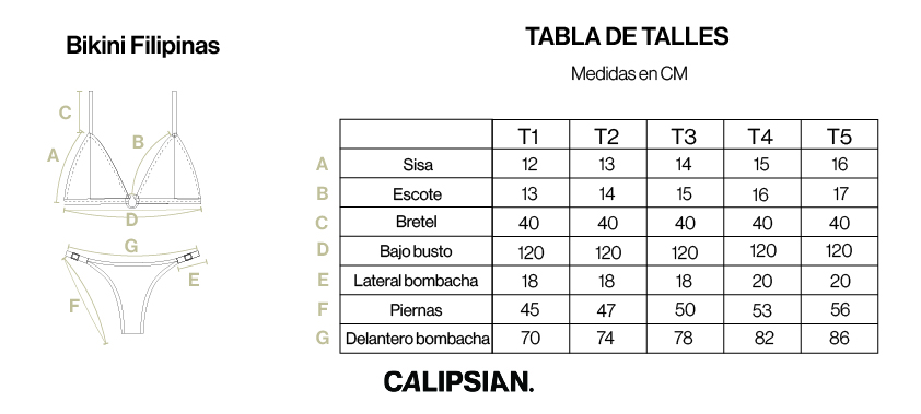 Corpiño: Triangulo fijo, con breteles regulables y gancho en la parte de atras, con una mini argolla plateada en cada terminacion