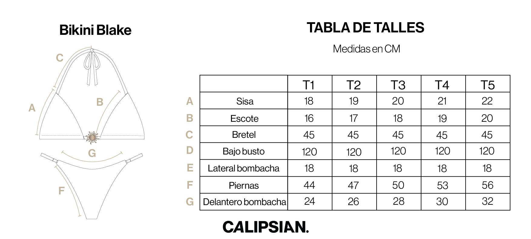 Corpiño: Triángulo con tiras regulables, y en el centro contiene un avio en forma de sol marino.