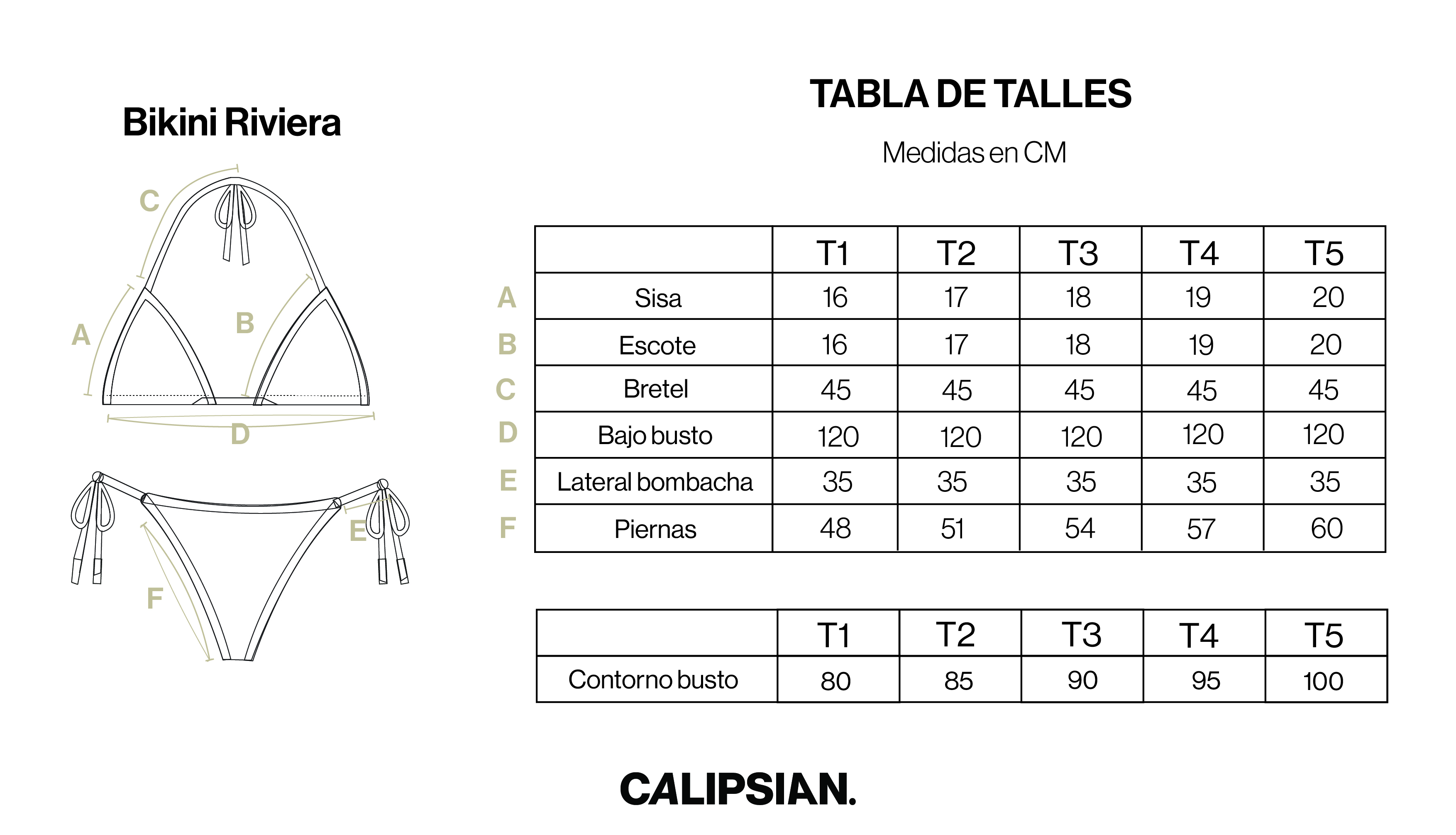 Corpiño: Triángulo con tiras regulables, y elastico en las costuras.